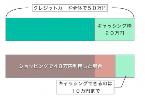 例えば、私の場合ショッピング枠で40万円使った月はキャッシング枠は10万円になります。